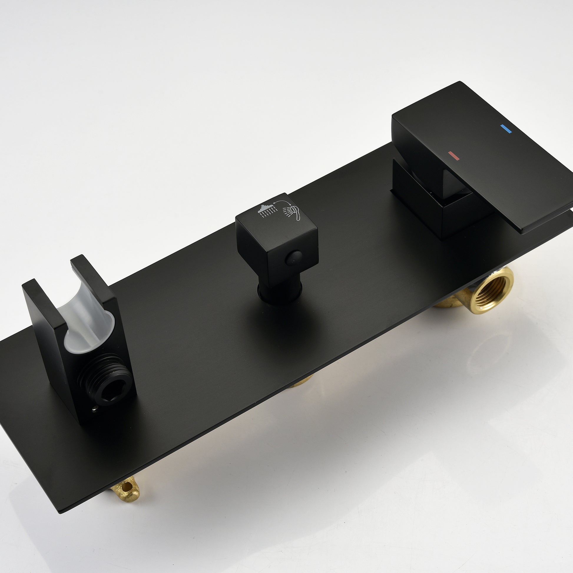 Brass Matte Black Shower Faucet With Shower System, 10 Inch Shower Head And Handheld Spray Bathroom Deluxe Faucet Combination